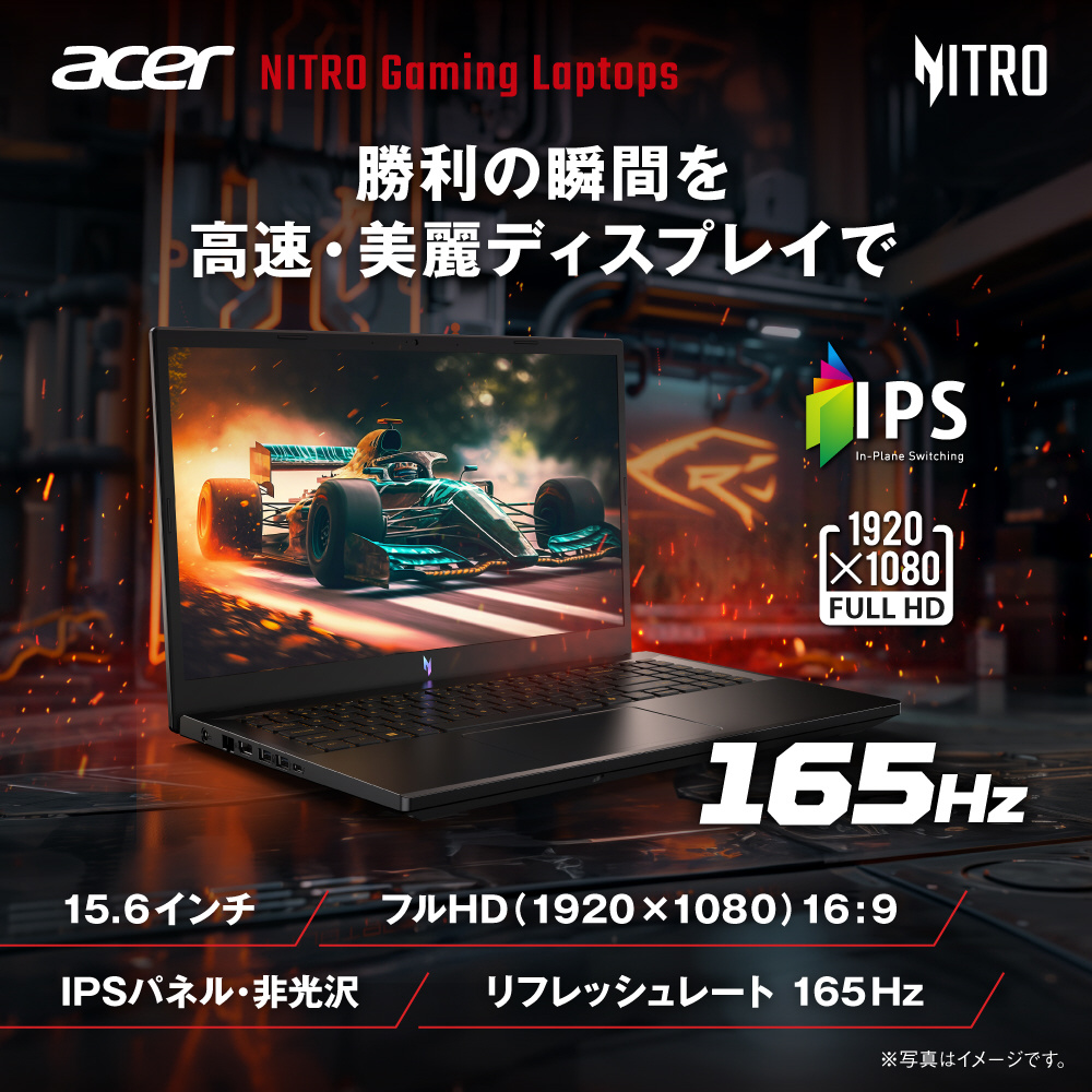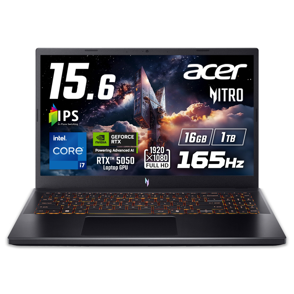 Acer Nitro V 15 Core i7 13620H RTX 5050 16GBメモリー 1TB SSD 15.6インチ フルHD 16:9 IPS 非光沢 165Hz デュアルファン デュアル吸排気 92万画素 Webカメラ WiFi 6 Bluetooth 5.2 Windows 11 英字キーボード ANV15-52-N76Z55/E
