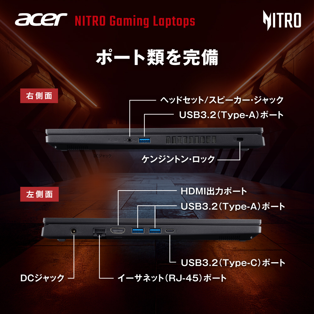 ANV15-52-N76Z55/E Acer Nitro V 15 Nitro オブシディアンブラック [15.6型 /Windows11 Home /intel Core i7 /メモリ:16GB /SSD:1TB /英語版キーボード]