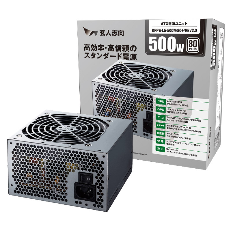 KRPW-L5 REV2.0シリーズは、80PLUS STANDARDを取得したPC用ATX電源です。