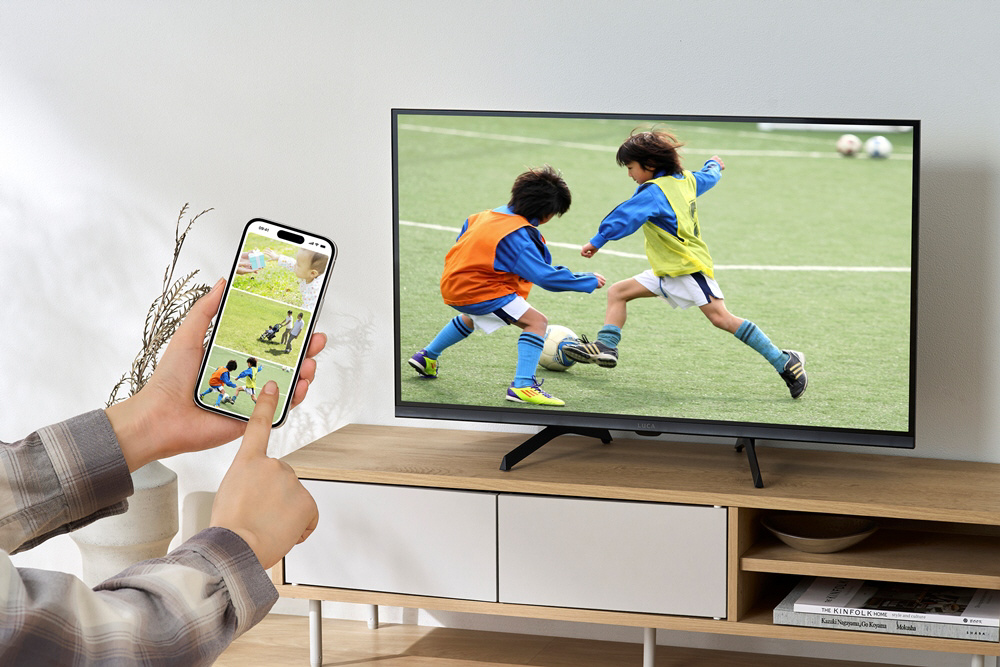 ■キャスト機能対応なので、アプリをダウンロードすればスマートフォンで視聴している映画や番組、アプリ、ゲームなどをそのままテレビの大画面で楽しめます。