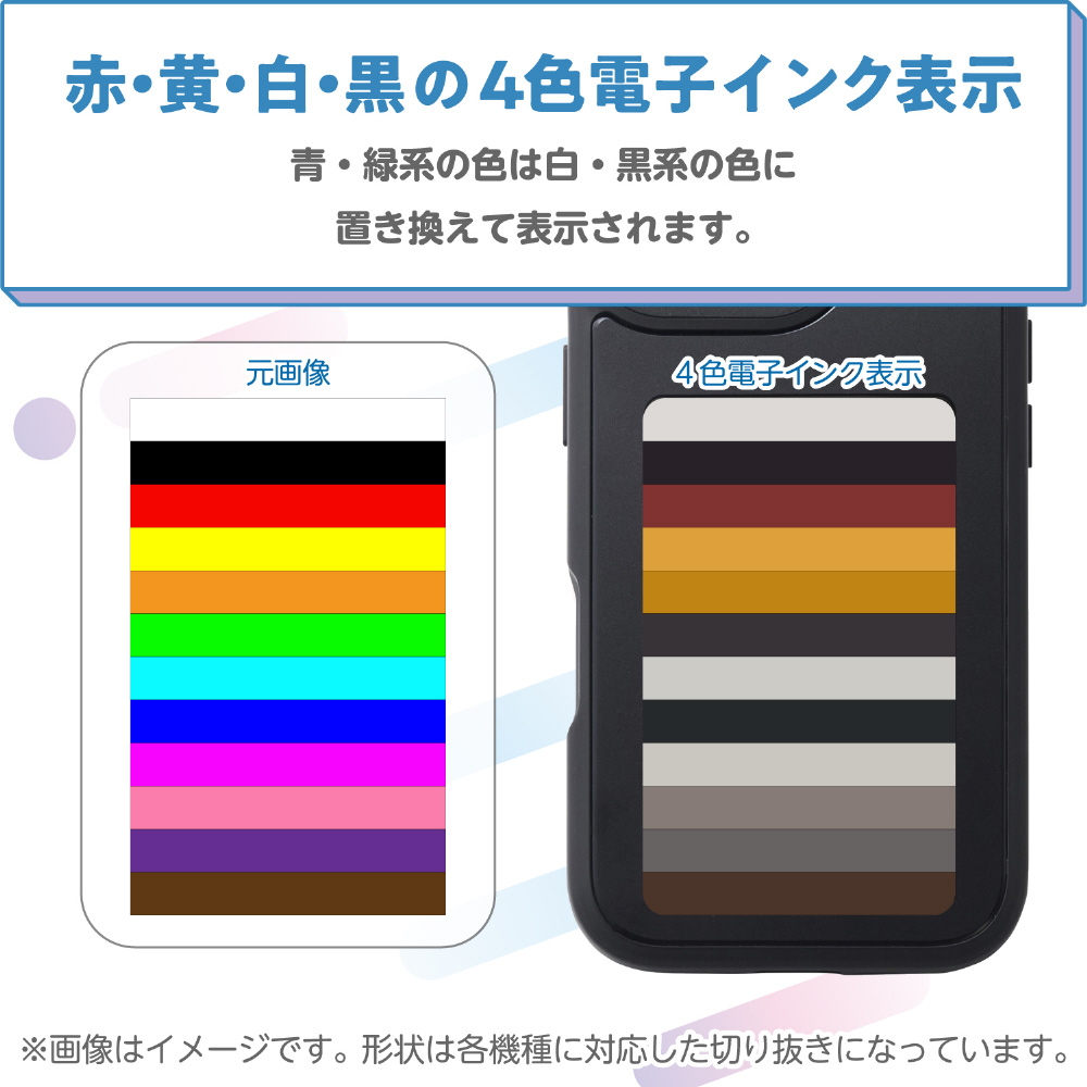 ※本製品は赤・黄・白・黒の4色単諧調表示です。青〜緑系の色は別の色に置き換えられます。ご了承ください。