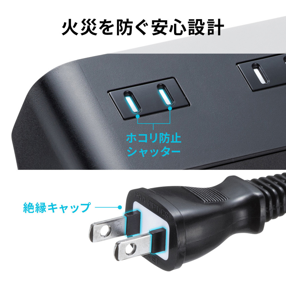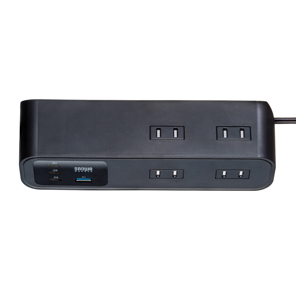 タップ クランプ固定式 (AC4個口+USB-C×3+USB-A×1・PD65W・ブラック) デスクに固定 ホコリシャッター付 TAP-B114UC-2BK