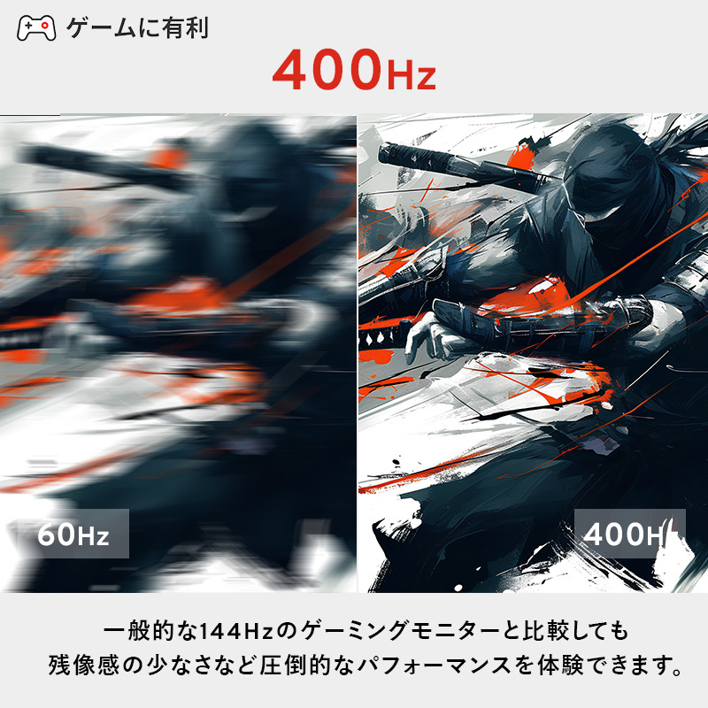 | 垂直走査周波数(Hz) | リフレッシュレート:400Hz Display Port:400Hz、HDMI:240Hz |