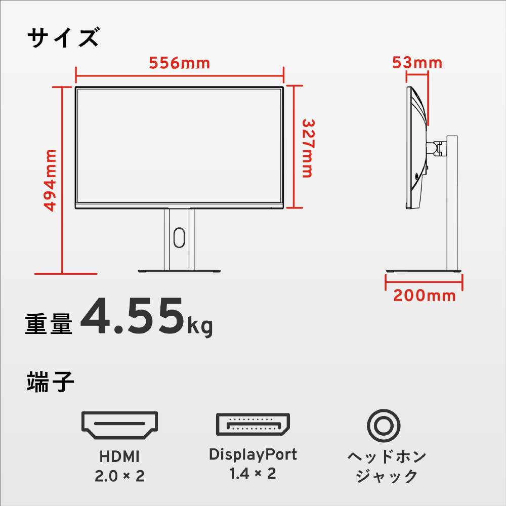 | 付属品 | [同梱品] ・モニター ・スタンド ・Display Port (1.4)ケーブル ・電源アダプター |