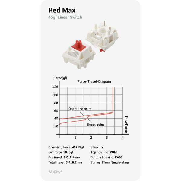 ノーマルプロファイルのスイッチは、よりしっかりとした満足感のある打鍵感を提供します。