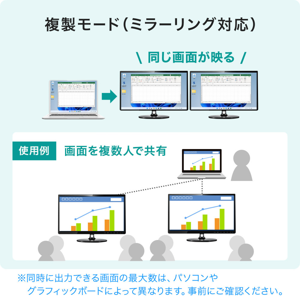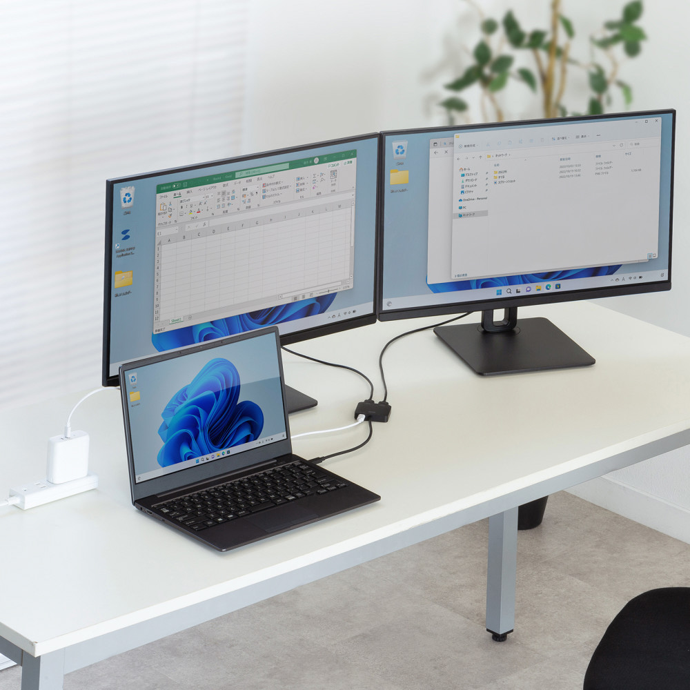 Type-CポートからHDMI×2ポートに分配/拡張して映像出力ができる4K対応変換アダプタ。PD対応で充電しながらの長時間映像出力が可能。