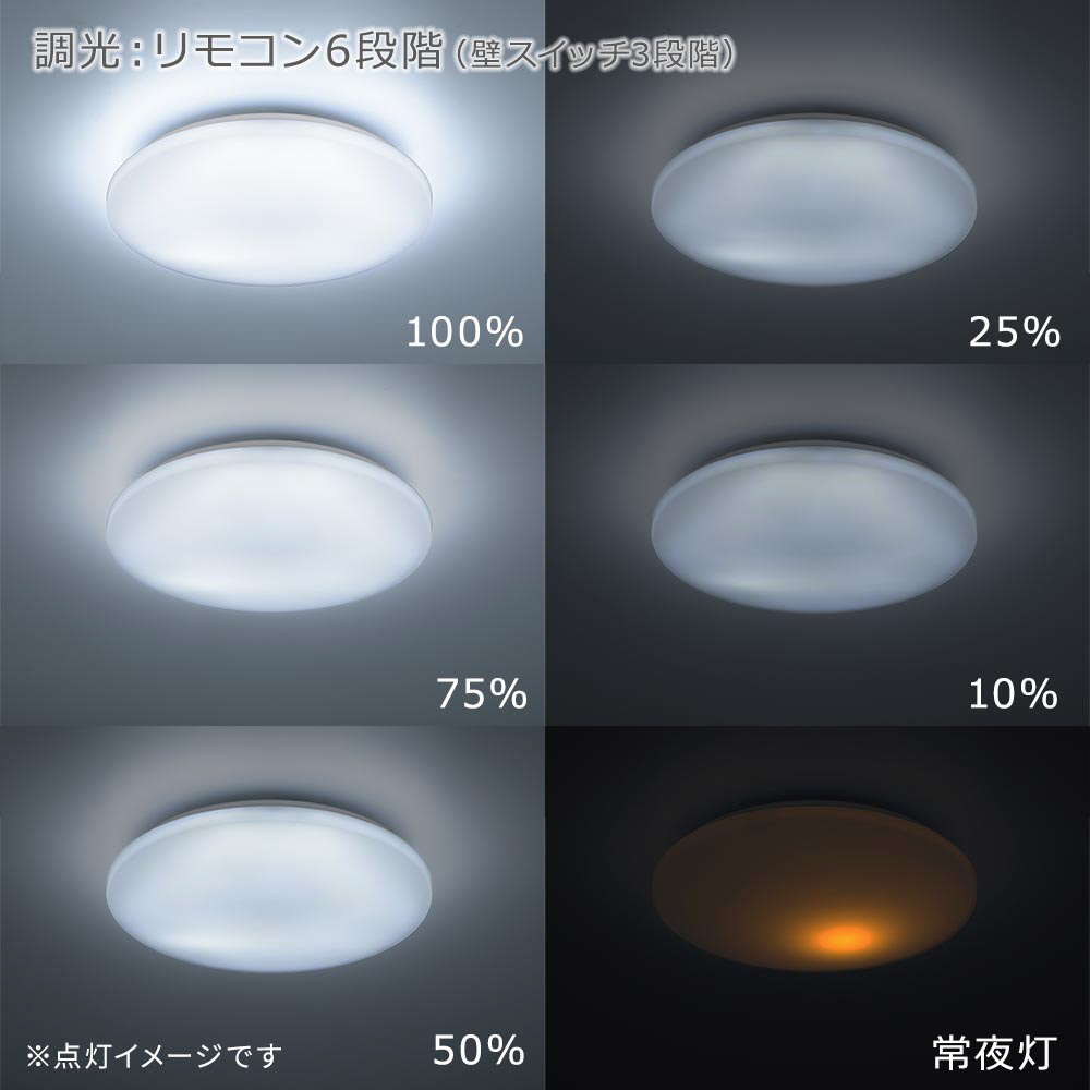 ■ 調光機能:リモコン調光…100%ー75%ー50%ー25%ー10%・常夜灯、壁スイッチ調光…100%ー50%ー常夜灯