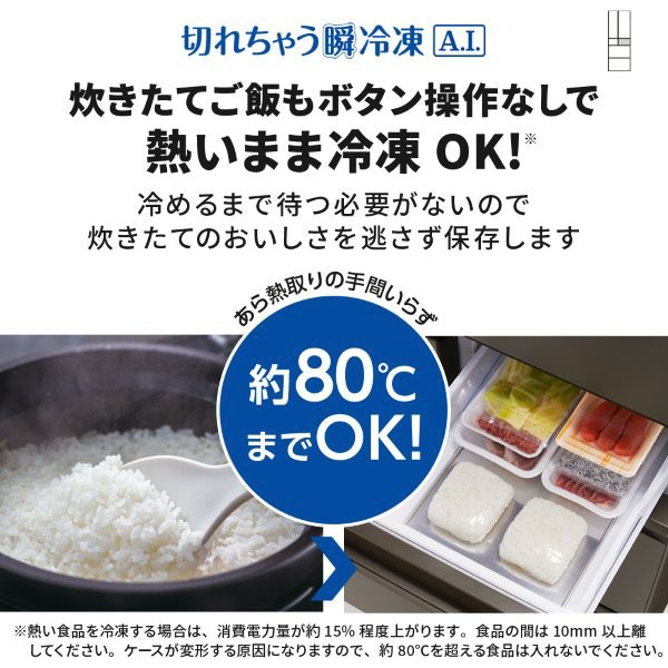 ※食品の種類や保存量、投入時の状態により凍る場合があります。