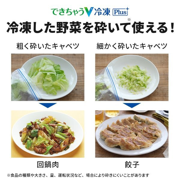 「できちゃうV冷凍+」で野菜を便利に冷凍保存!冷凍した野菜を手で砕いて、そのまま料理に使えます。