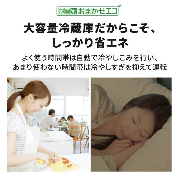 AIが家庭ごとの生活パターンを学習して、部屋別に最適な運転を実施。設定1つで、誰が使ってもラクにムダなくおいしく保存できます。