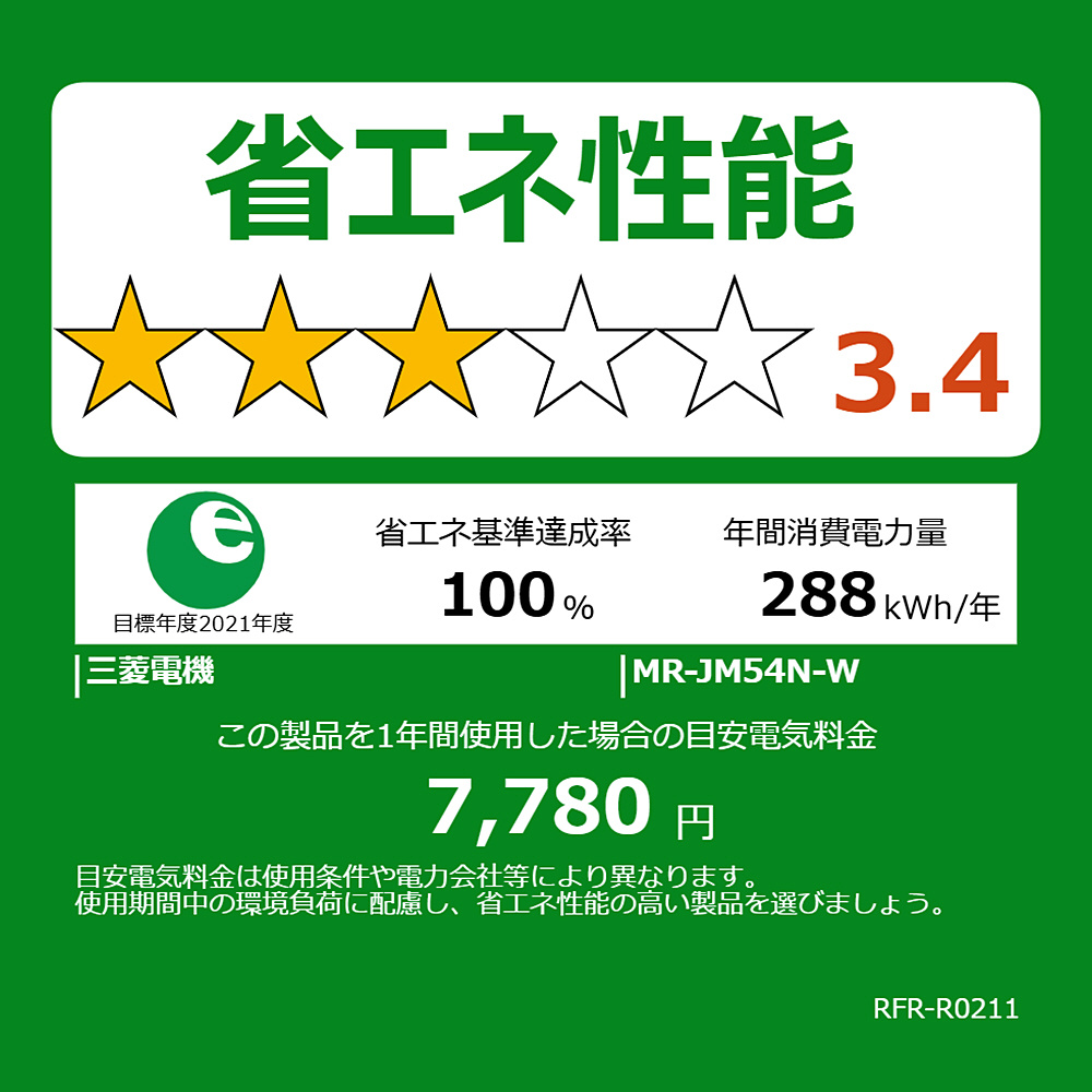 | 省エネ性能(目標年度2021) | ★★★☆☆ 3.4 |