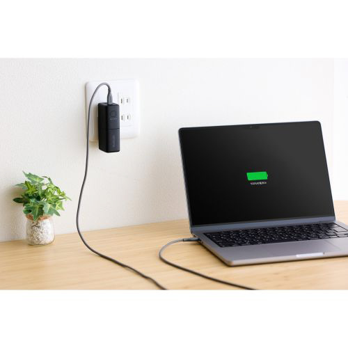 モバイルバッテリー リチウムイオン電池 AC一体型 USB PD 35W 5000mAh USB-C入出力 USB-A出力 PSE適合 ブラック DE-AC14-5000BK