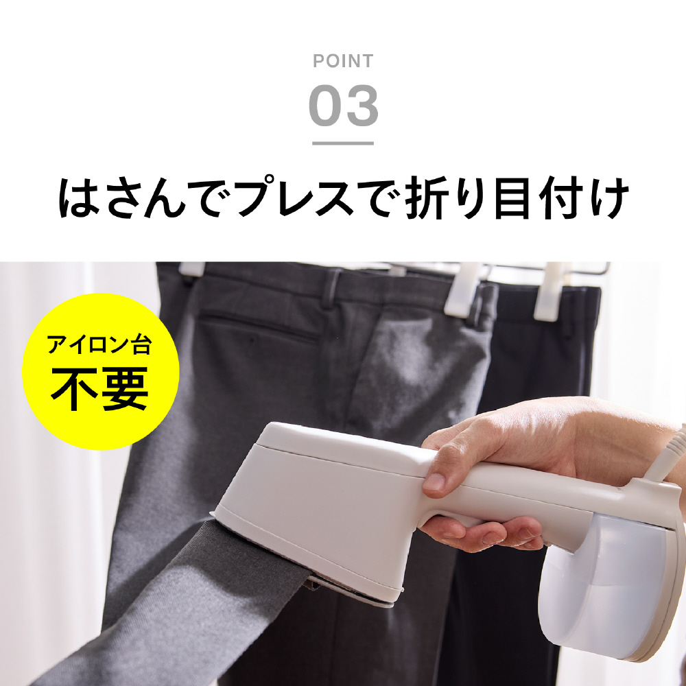 ツインバードの「はさめる衣類スチーマー SA-4098W」は、アイロン台不要でズボンの折り目がつけられる衣類スチーマーです。