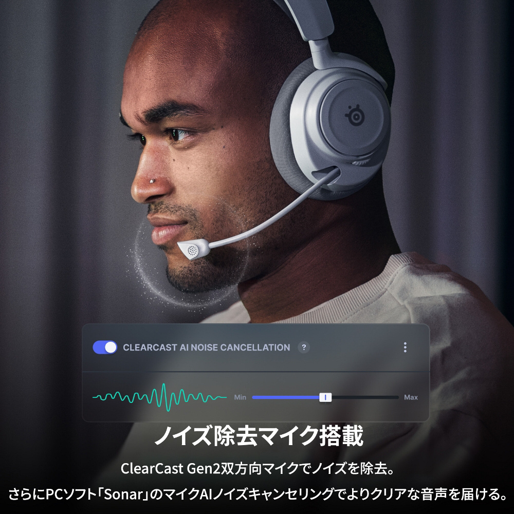 チャット中、キーボードのカタカタ音やPCのファンの音などを気にする必要はもうありません。SonarSoftwareのClearCastAIアルゴリズムが、受信音と発信音の両方から不要なノイズを除去します。放送品質のClearCastGen 2マイクは、背景ノイズを最大25db低減します。