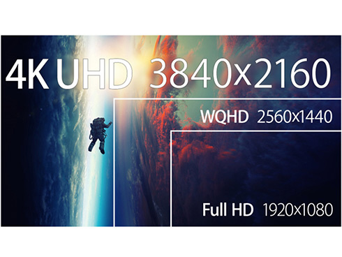 ■4KはフルHD(1920×1080)解像度の約4倍の作業領域を実現する3840×2160ドットの解像度となり、高精細な表示を実現できます。