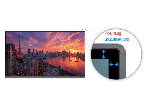 ■高画質VAパネルを搭載。3000:1の高コントラスト比は、より黒をくっきりと表現をすることが可能、写真や動画を色鮮やかに映し出します。最大輝度300cd/m2の液晶パネルは、sRGB:100%の広色域に対応し、動画や写真も色鮮やかに美しく表示します。