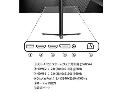 ■インターフェイスは、HDMI2.0 x2 (60Hz)、DisplayPort1.4 x1 (60Hz)を装備し、様々な機器との接続が可能です。