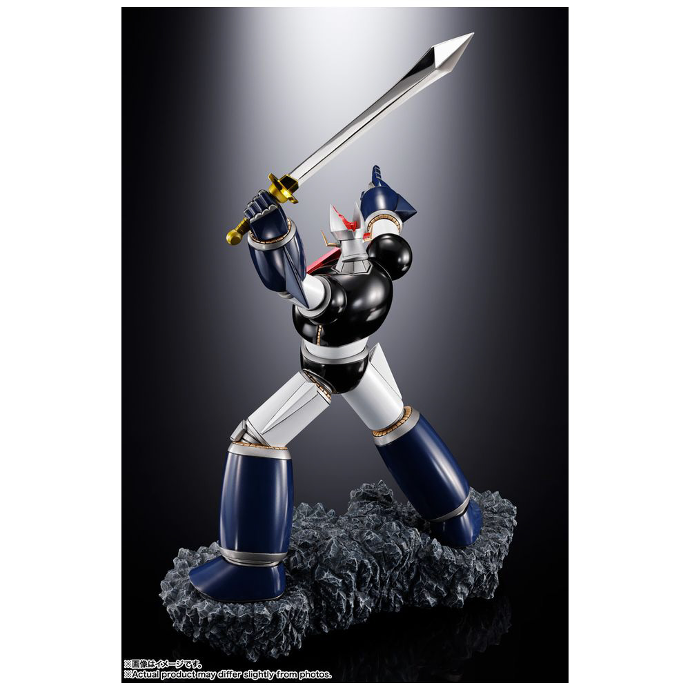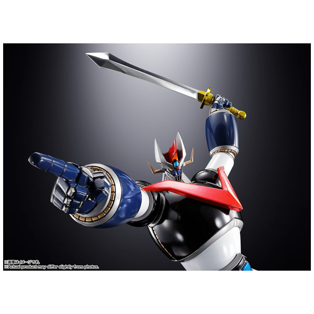グレートマジンガーが持つ剣「マジンガーブレード」刀身のシルバーと鍔のゴールドが美しいメッキ仕上げだ。