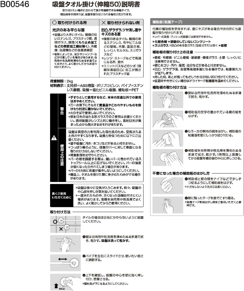 | 商品名 | 吸盤タオル掛け(伸縮50) B00546 |