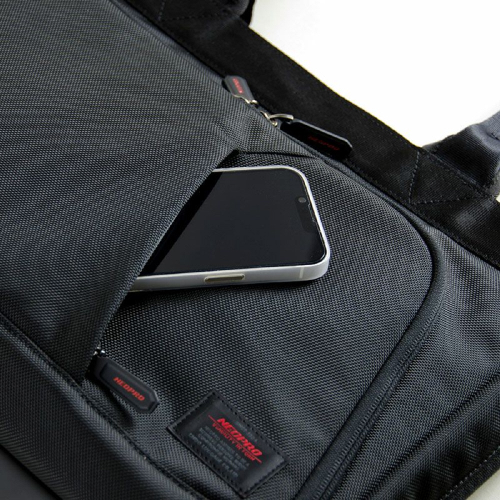 底部にEX(エクスパンダブル)ファスナーを備えた、容量拡張対応のトートバッグ。