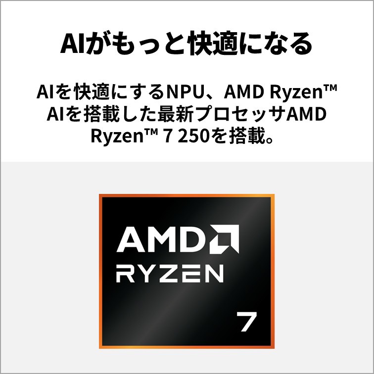 | NPU(AIプロセッサ) | AMD Ryzen AI(最大16TOPS) |