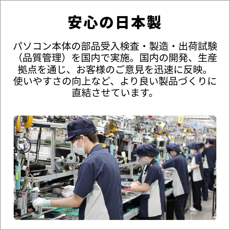 常に快適にパソコンを使用できるよう、細かな部分まで配慮されています。例えば、常にCPUの性能を最大限に引き出し快適な作業を行えるように、CPUを強力に冷却できるデュアルファンを搭載しています。