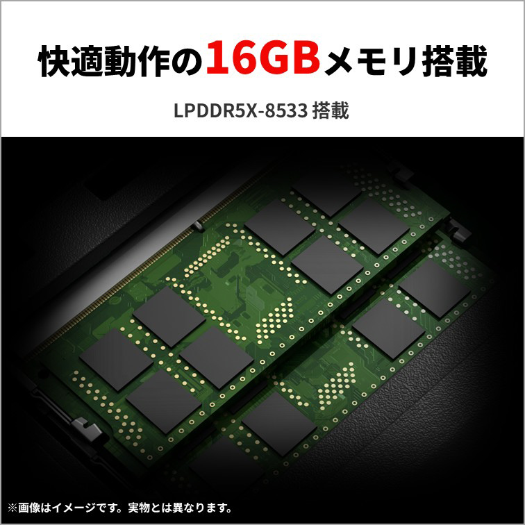 最大40TOPS(1秒間に40兆回の計算)の性能を誇るNPUを搭載した、インテル Core Ultra 5 プロセッサー 226Vを搭載。従来のアプリケーションとも互換性が高く安心です。