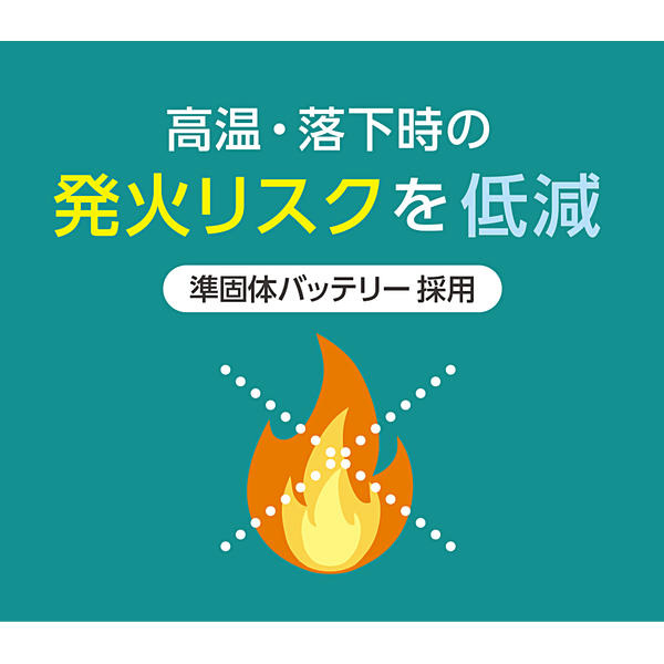 ※電解質をゲル化した準固体電池を採用し、リチウムデンドライトの発生を抑制。発火や破裂のリスクを低減します。