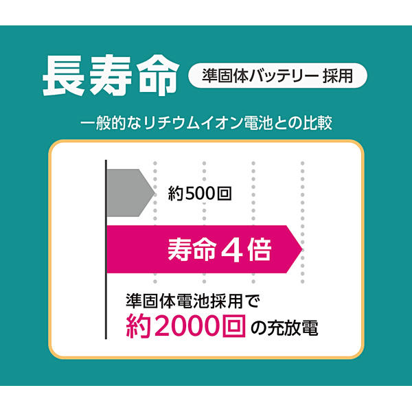 準固体リチウムイオン電池採用で約2000回の充放電に対応!