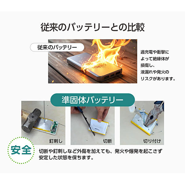 安全性が高い準固体電池を採用したモバイルバッテリー!