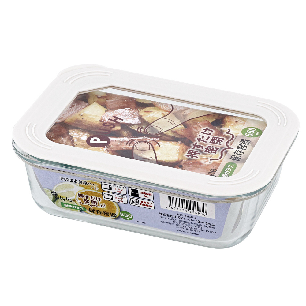 | 商品名 | 保存容器 ガラス 電子レンジ オーブン 食洗機 対応 耐熱 長方形 550ml New Style LD-693 |