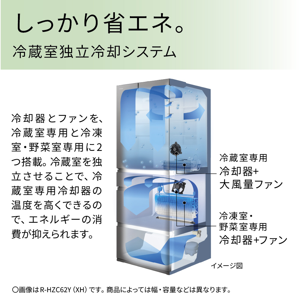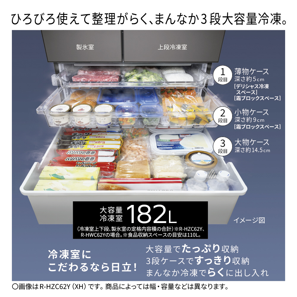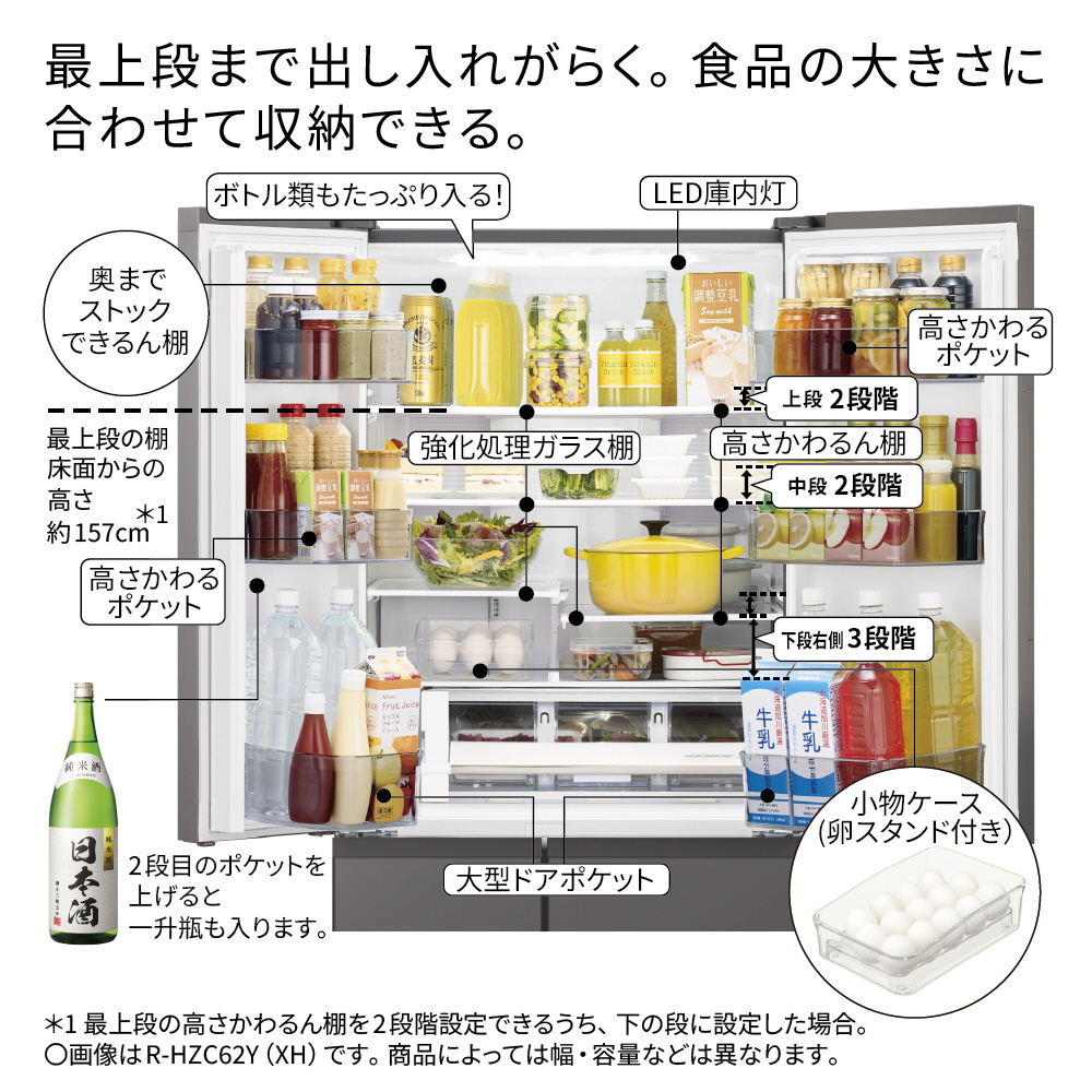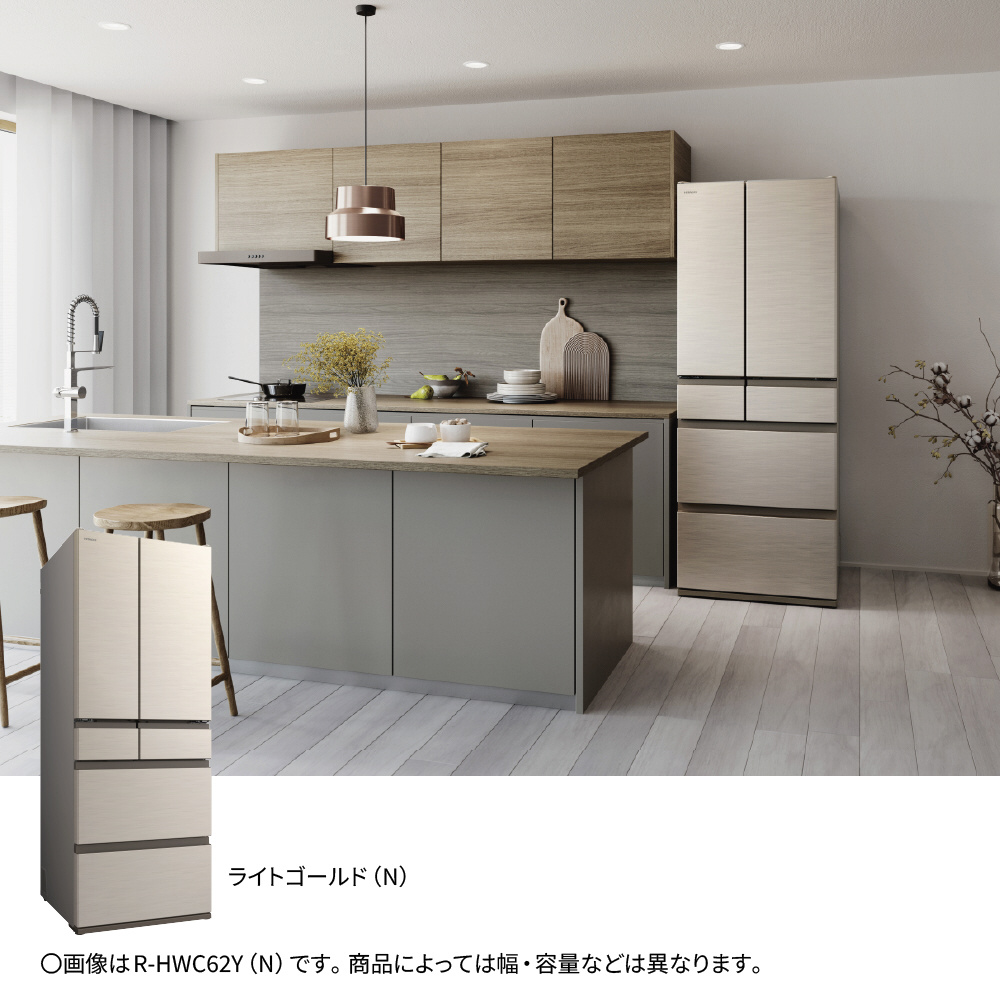 商品名 冷蔵庫 HWCタイプ ライトゴールド R-HWC62Y-N [幅68.5cm /617L /6ドア /観音開きタイプ]【基本設置料金セット】 【買い替え20000pt】