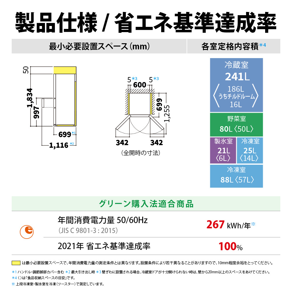 | 商品名 | 冷蔵庫 スムースダークグレー SJ-XW46R-H [幅60cm /455L /5ドア /左右開きタイプ] |
