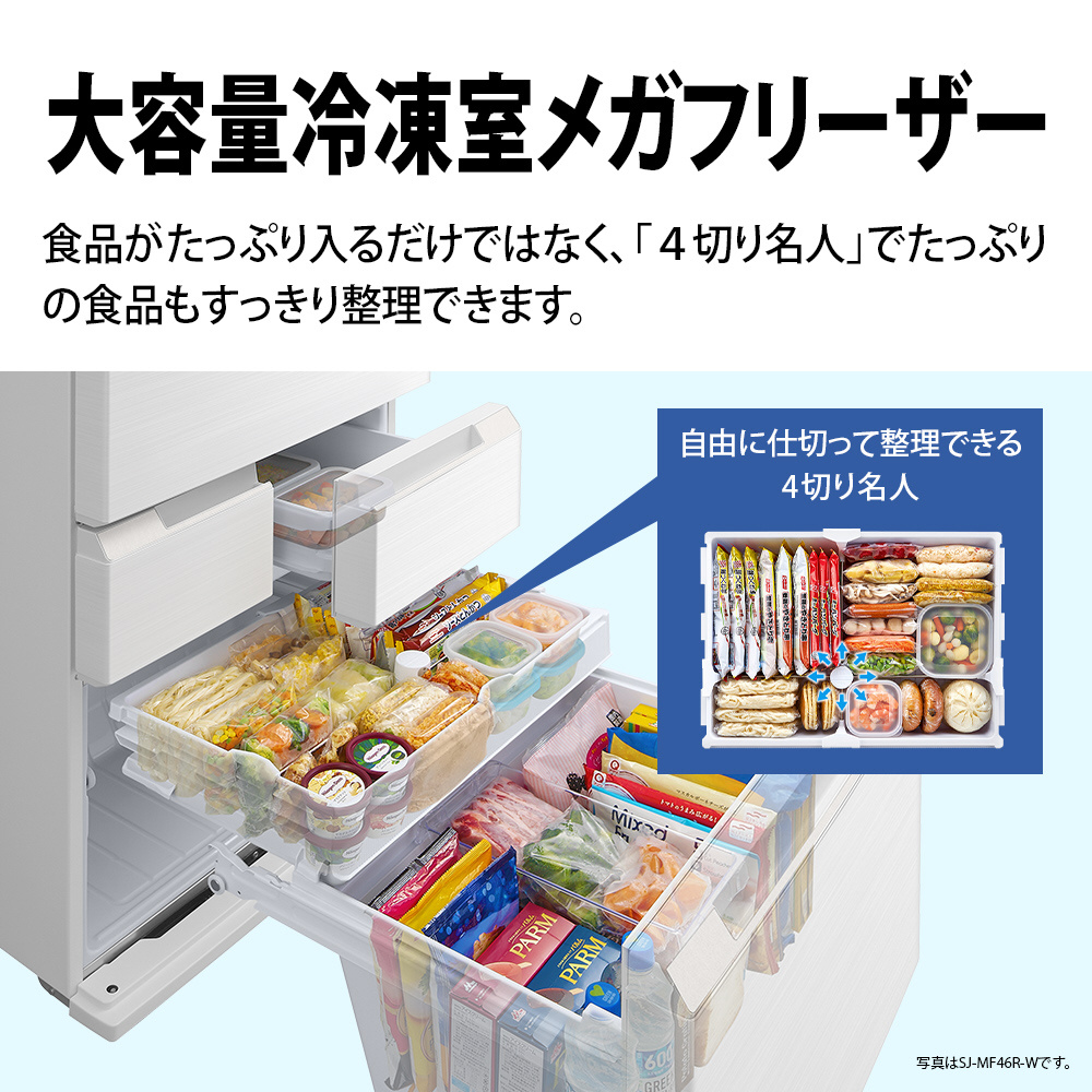 | 商品名 | SJ-MF46R-H 冷蔵庫プラズマクラスター冷蔵庫 ダスクダークメタル系[6ドア/観音開きタイプ457L]《基本設置料金セット》 SJ-MF46R-H 【買い替え10000pt】 |