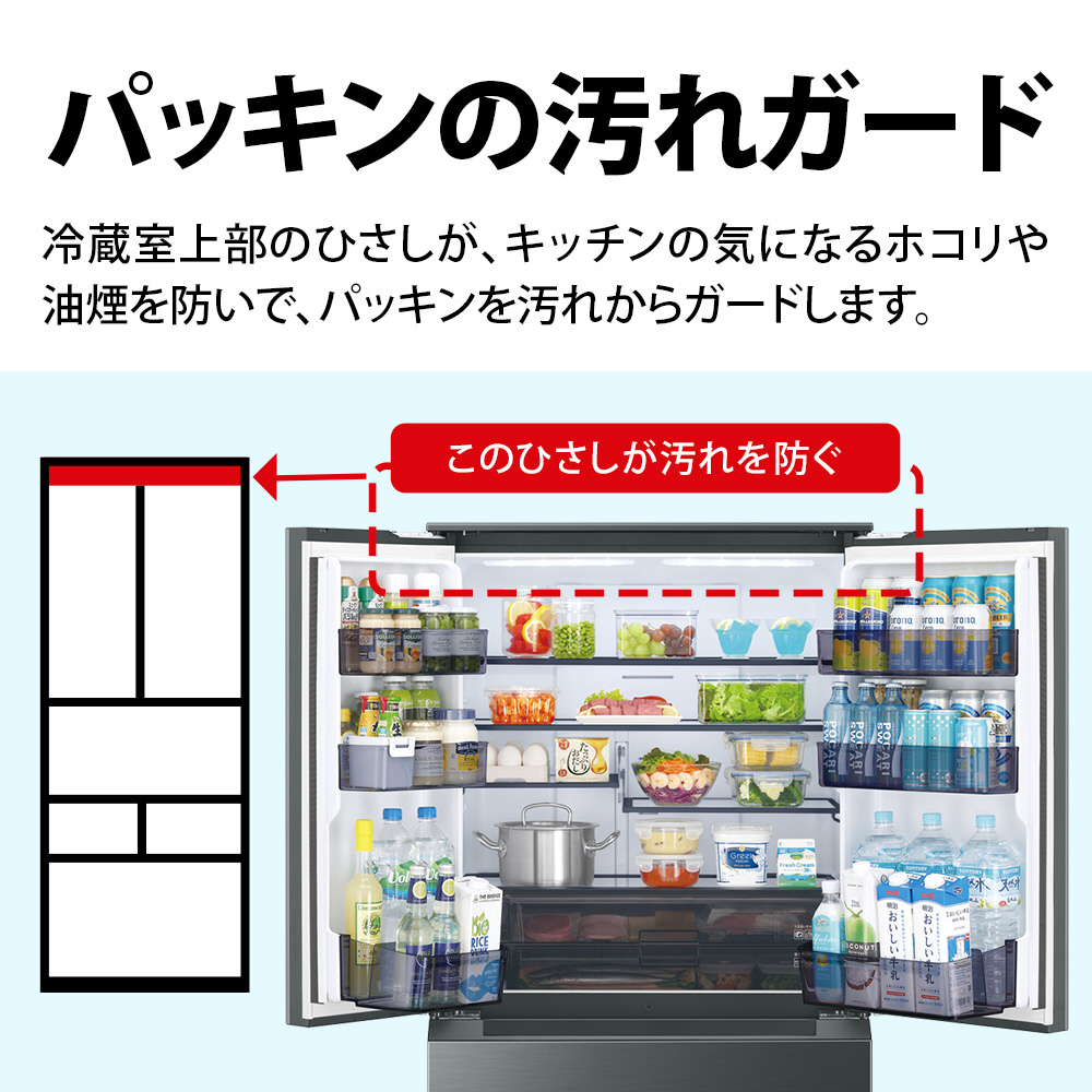 奥行き薄型63cm、野菜を14日間シャキット保存、特大氷が作れるトリプルメガアイス搭載。