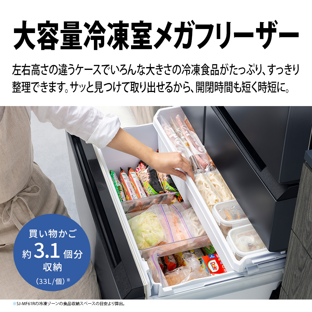 ※2 SJ-MF61Rの冷凍ゾーンの食品収納スペースの目安より算出。