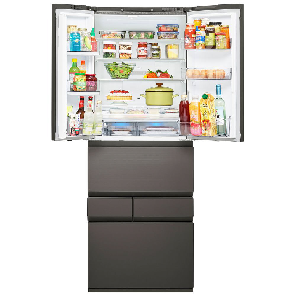 特許技術による薄壁化と冷却ユニットの小型化により、使いやすく大容量化。3段になった冷凍室などたっぷりの収納量と収納のしやすさを両立しました。キッチンにきれいに収まるサイズながら543Lの大容量。奥の食材も取り出しやすく便利です。