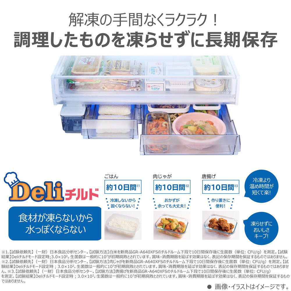 まとめ買いも安心大容量。作り置きのおかずや余ったごはんを凍らせずに約7日間保存可能「Deliチルド」搭載。