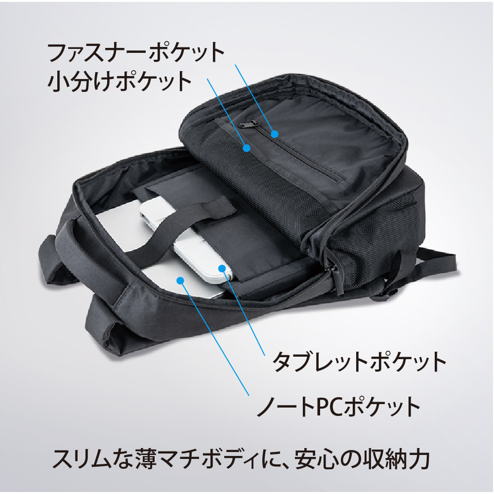 薄くても頼れる収納力。書類や小物もすっきり収まる。