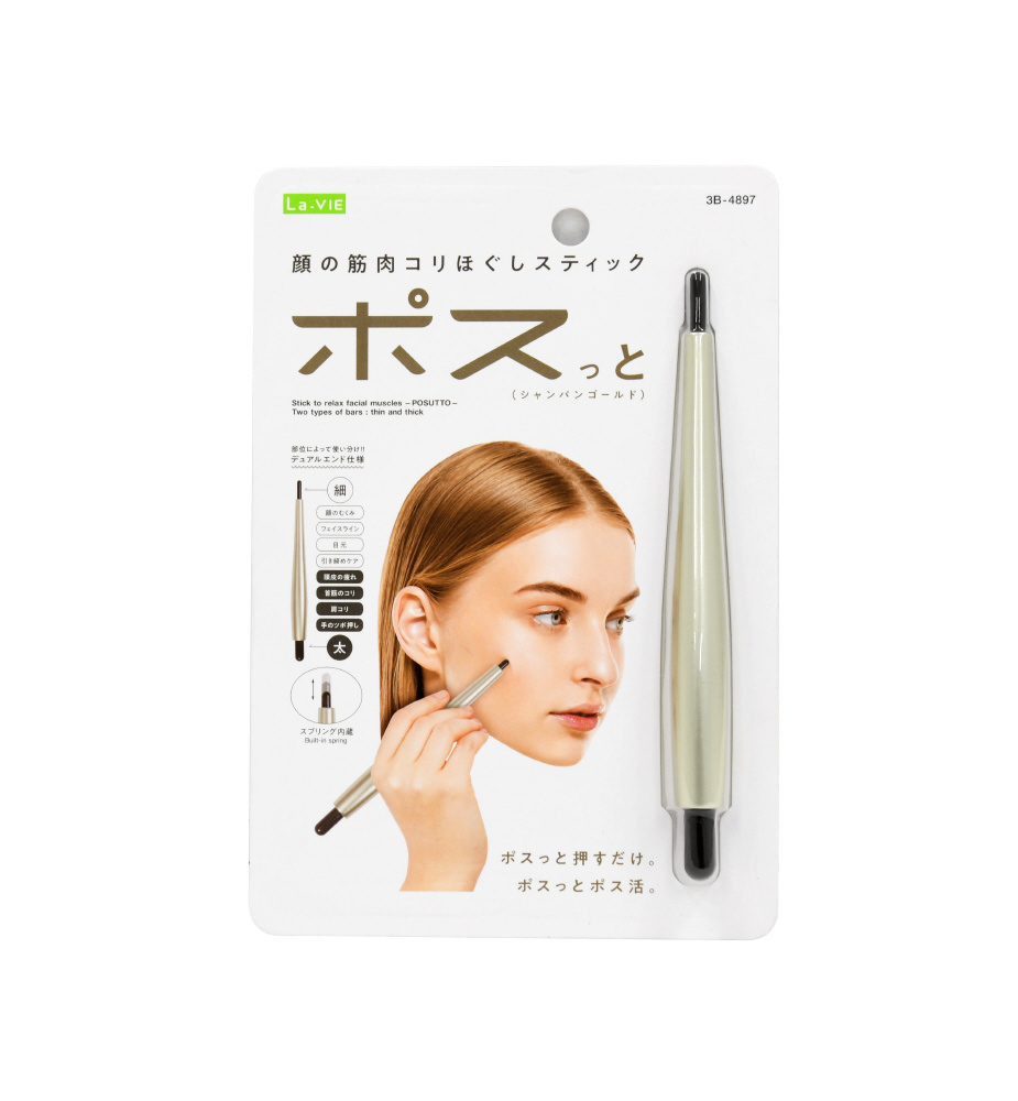 顔の筋肉をほぐす、スプリング内蔵のコリほぐしスティックです。