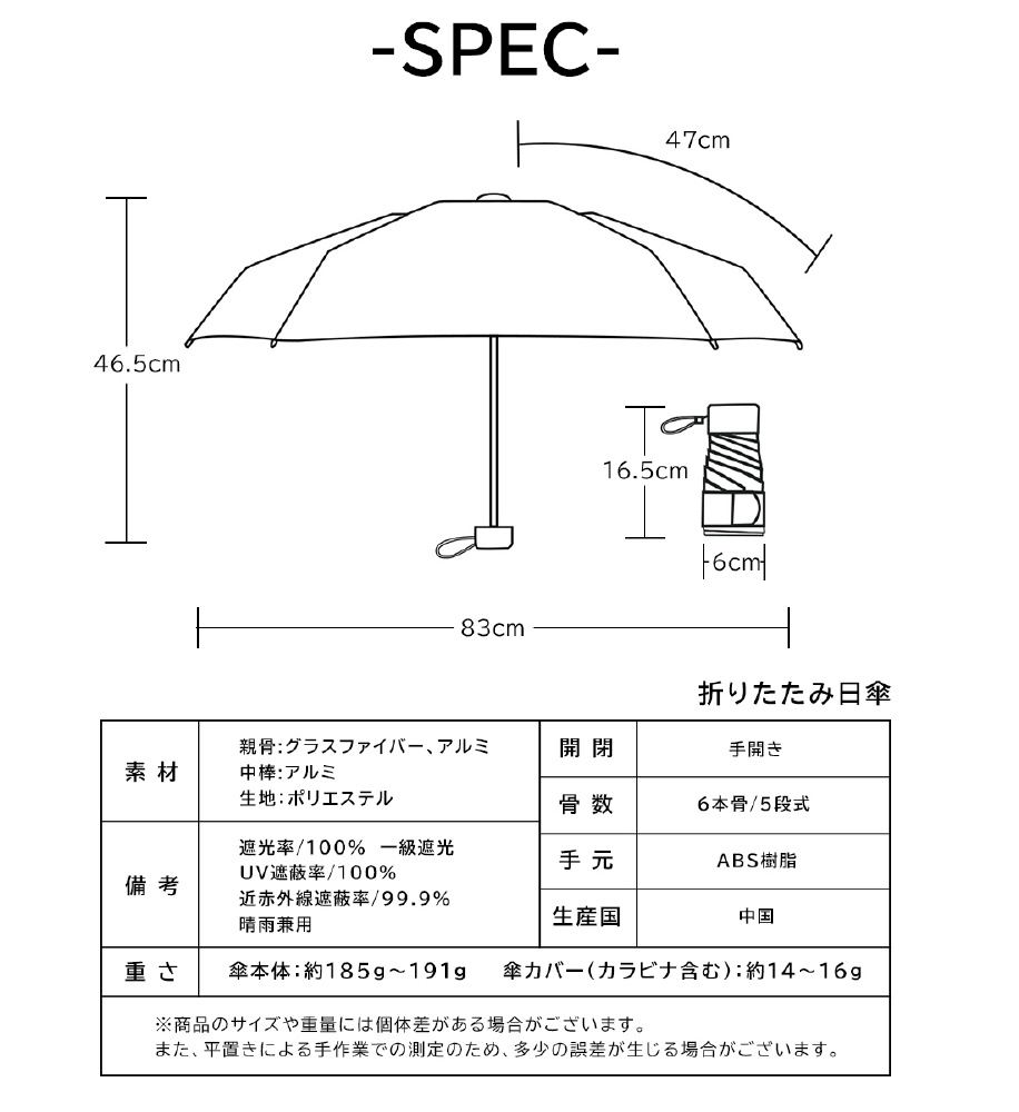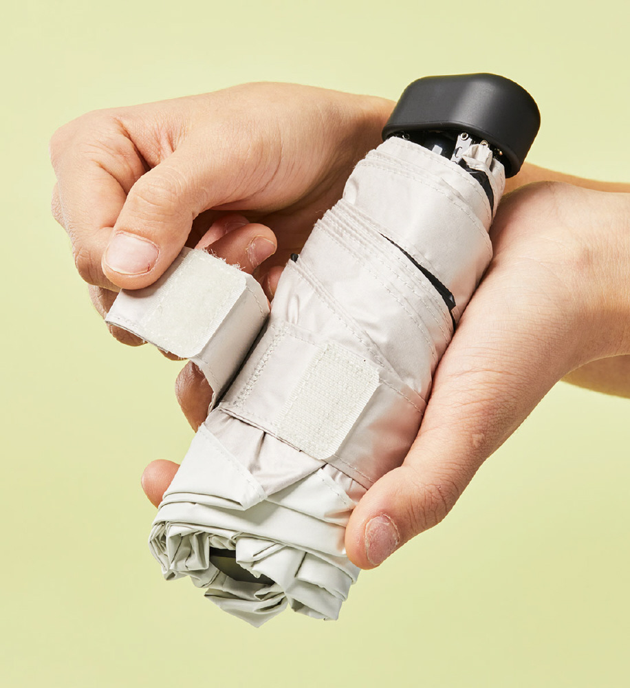収納時は16.5cmと超コンパクトな晴雨兼用の折りたたみ日傘!完全遮光で紫外線からお肌を守ります!カラビナ付きのおしゃれケースにもご注目!