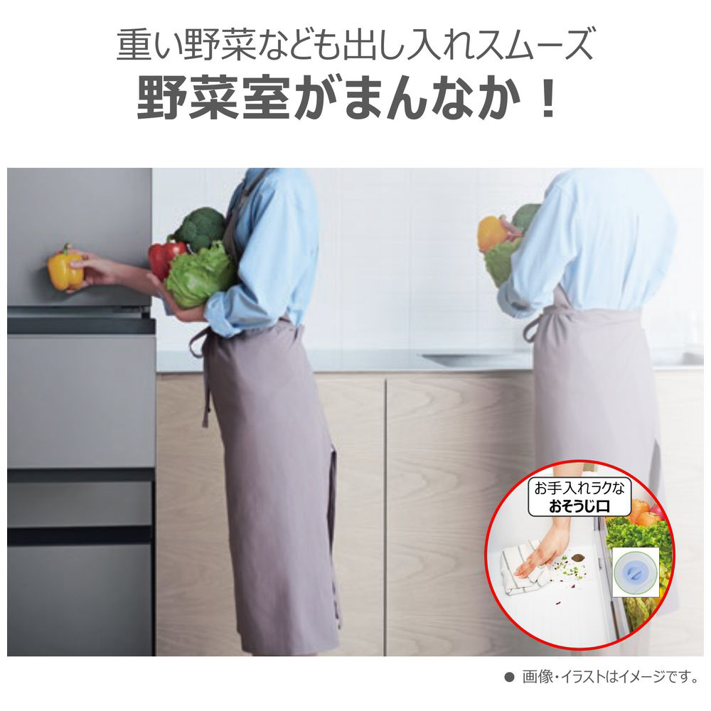 ■野菜室が「まんなか」にある使いやすさに加えて「お掃除口」があり、清掃も簡単に