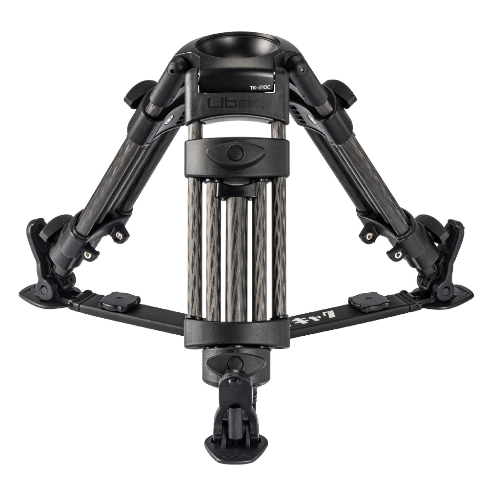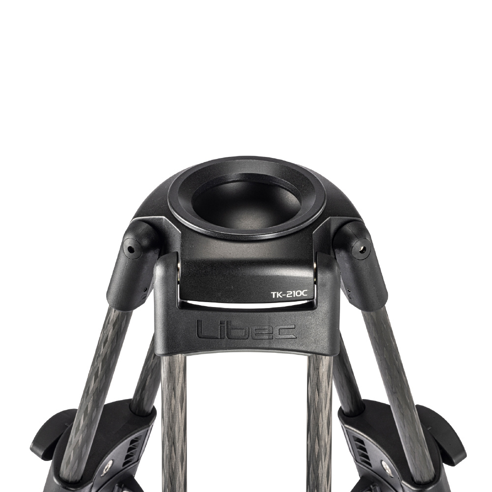 プロ用ベビー三脚「TK-210C」。3段脚で伸縮幅が広く、最低高さ21cmのローアングルから最高高さ70cmまでの撮影ポジションをカバーします。「TK-210C」は100mmポール機材も取り付けることができます。また、耐荷重40kgでありながら、カーボンパイプを使用しているため、軽量・コンパクトで容易に持ち運べます。