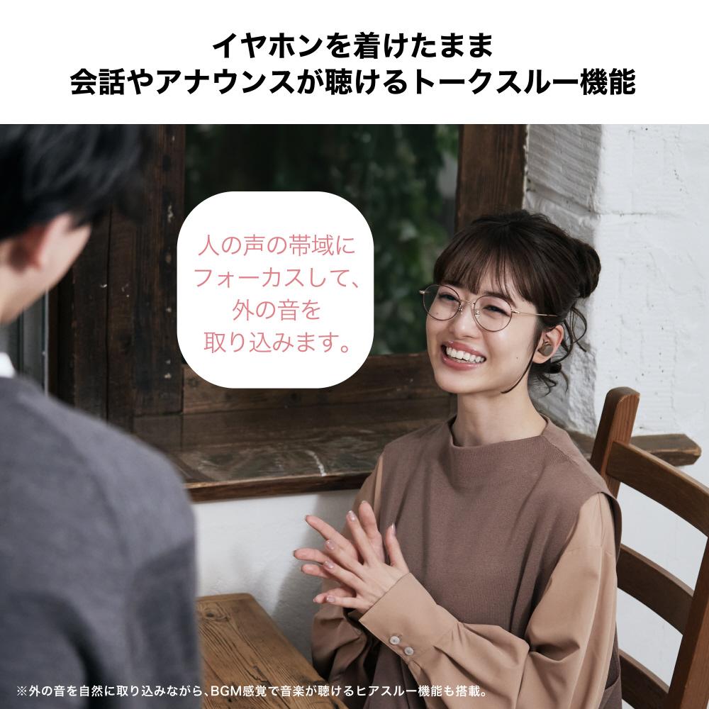■イヤホンを着けたまま、会話やアナウンスが聴けるトークスルー機能