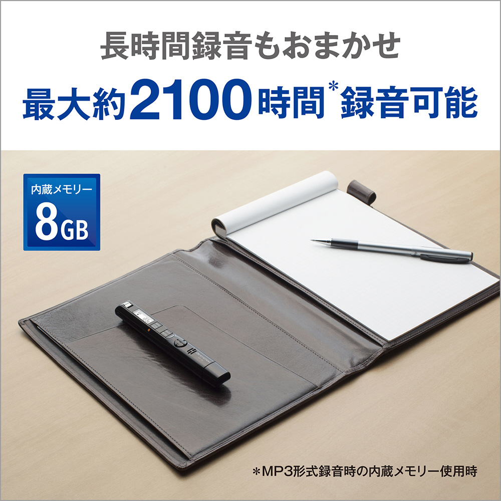 ■大容量メモリー8GB内蔵で、長時間の会議を連続して録音可能