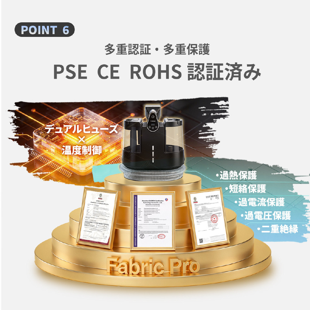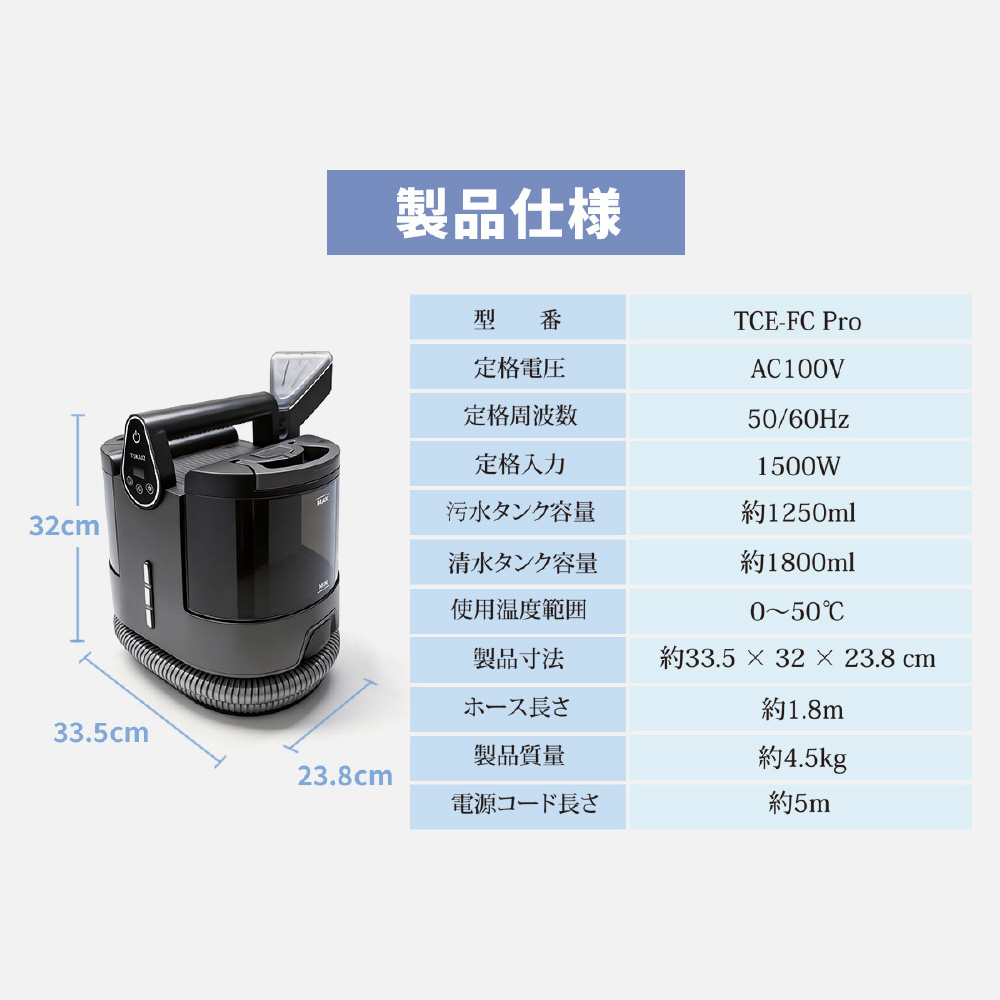 ファブリッククリーナー ファブロ スチーム カーペットクリーナー 100℃スチーム 18,000Pa 強力吸引 温水洗浄 4段階温度切替 車用 ブラック TCE-FC Pro [キャニスター]