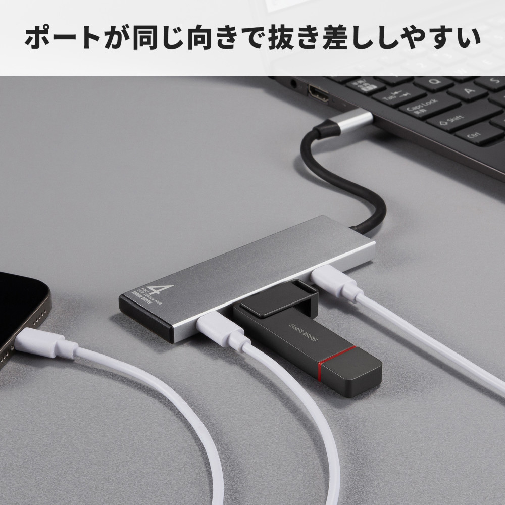 薄型アルミタイプ。USB Type-C 10Gbps対応 Type-C 4ポート PD対応。