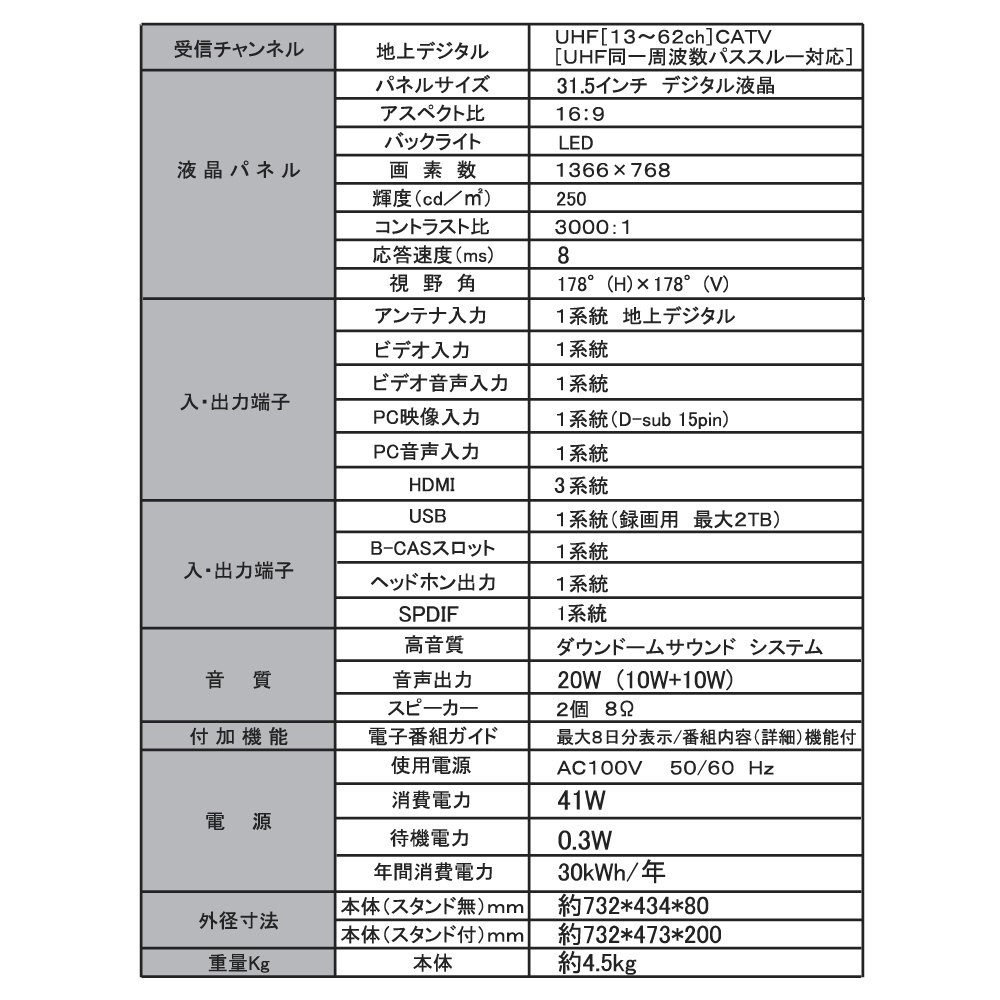 シンプルな作りで一人暮らしやプライベートルームにぴったりのミドルサイズハイビジョンテレビです。