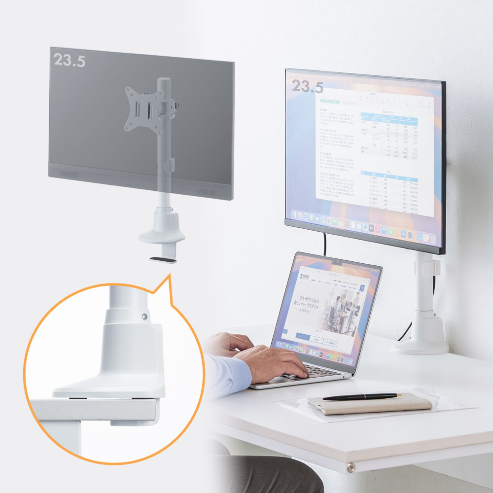 モニターアーム [1画面 /〜32インチ] ショートアーム・薄型ショートクランプ ホワイト CR-LAC115W