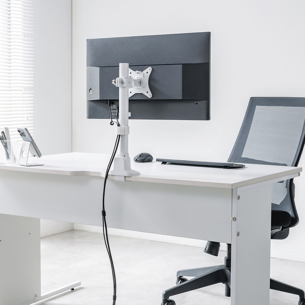 わずか奥行き38mmの薄型ショートクランプタイプのシングルモニターアーム。